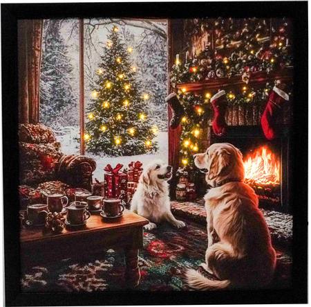 Fibre Optic Wall Art - 30cm x 30cm - Dogs Fireplace