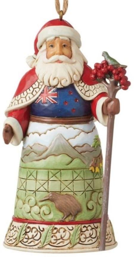 Jim Shore's Christmas Around the World collection celebrates tradition and culture. Incorporating each country's unique customs into his ornaments, he creates unforgettable collectibles to cherish. This Santa ornament boasts New Zealand's natural beauty.