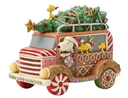 Brighten your holiday season with this playful Jim Shore design of Snoopy driving a festive gingerbread cookie van. Snoopy steers with joy as peppermint wheels spin, while Woodstock rides on the roof with a decorated Christmas tree in tow.