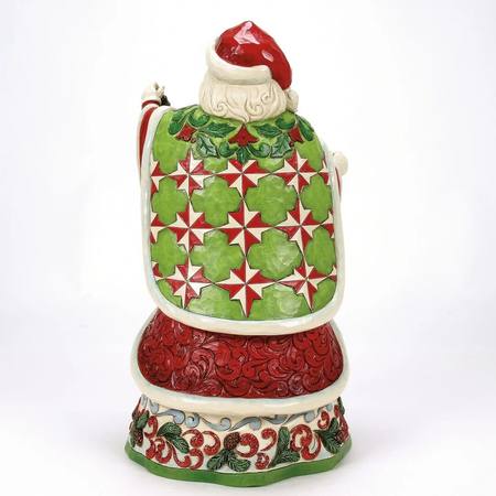 This 3rd annual collector's edition Santa by Jim Shore is a masterpiece. Holding an evergreen garland embellished with silver bells and bows, Santa reflects on nature with a winter tree and deer scene. A beautiful deluxe piece for your holiday home decor.