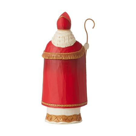 Wearing a traditional robe, this Jim Shore Belgian Santa holds a shepherd's crook and bell. With beautiful patterns and a customary Christmas cap, Santa goes by a different name in Belgium. Be Generous and St. Niklaas might gift you some Yule log.