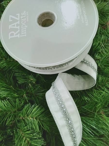 Raz 2.5"  White Jewelled Velvet  Wired Christmas Ribbon R4327704