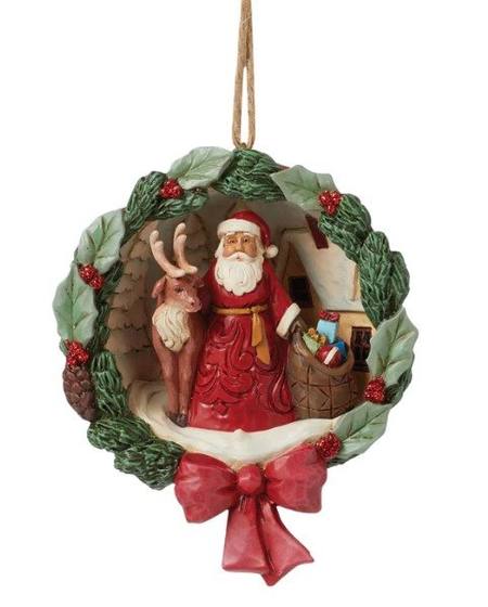 - Jim Shore Heartwood Creek Ornament Collection Santa and Deer Wreath Ornament